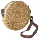 Sac à bandoulière rond en matière naturelle, sac avec lanière en cuir, marron, beige, Ø 24 x 24 cm